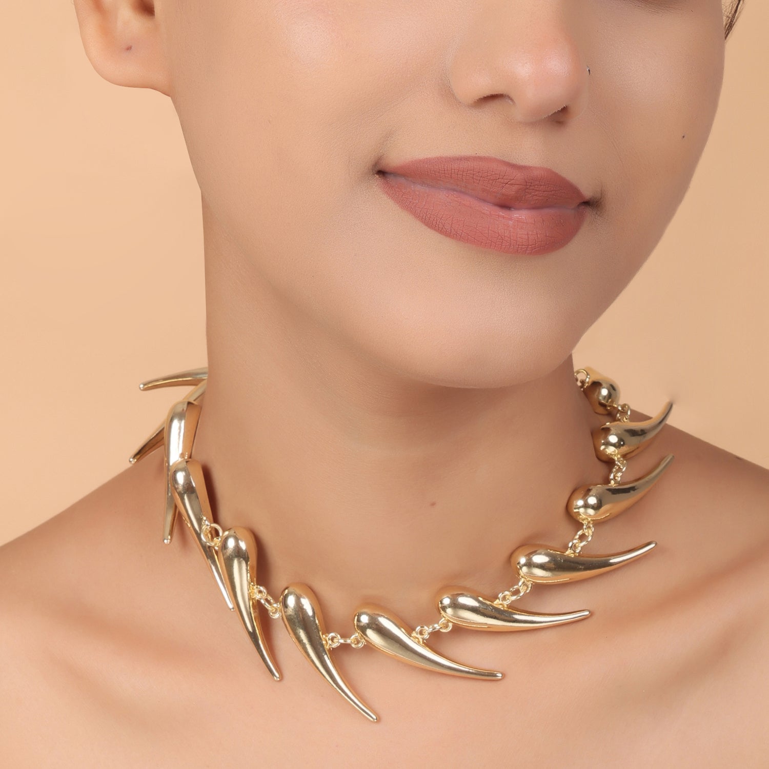 Golden Edge Sculpted Spike Necklace – Bold Western Luxe by OLIARI
