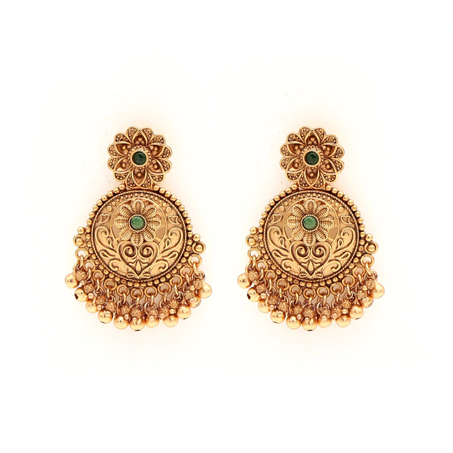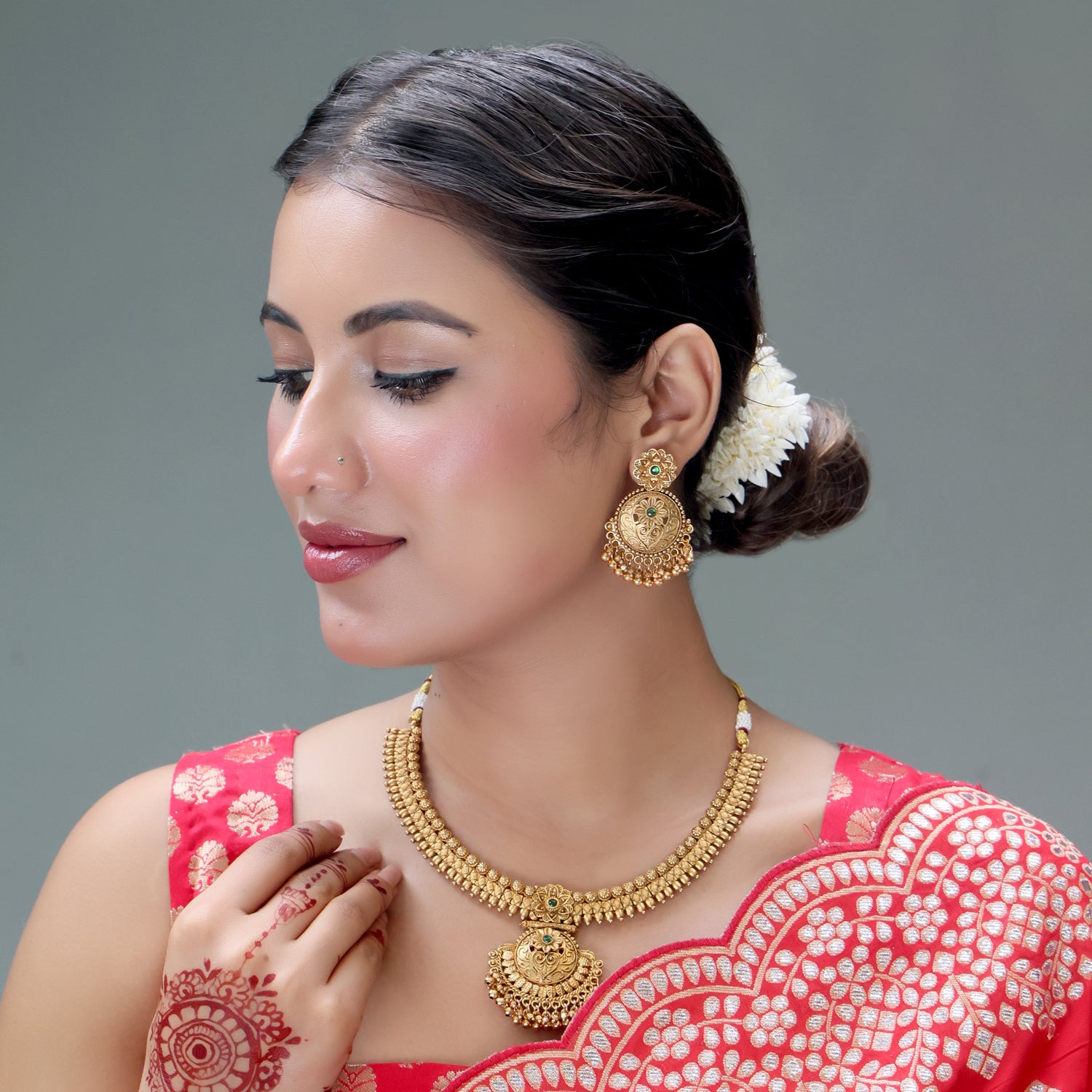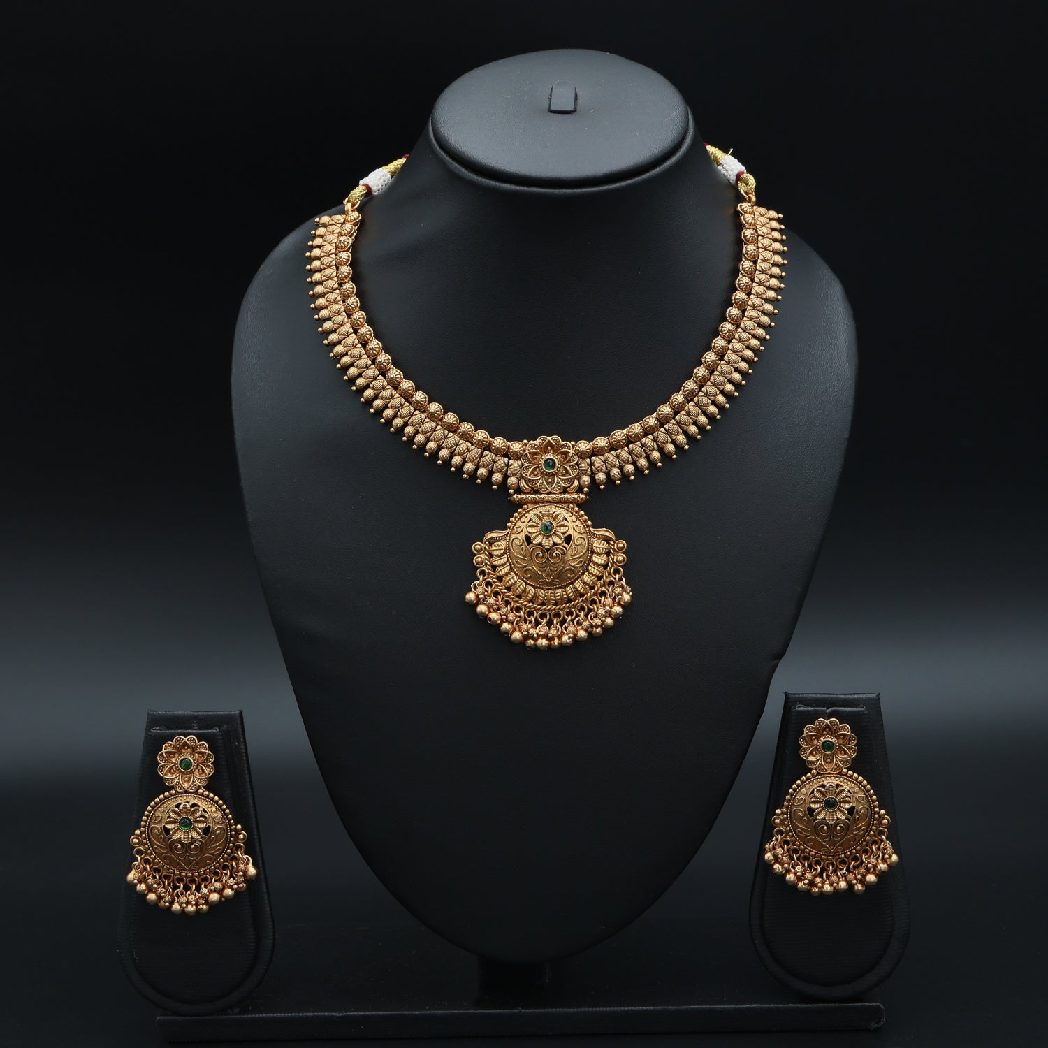 Antique Gold Temple Necklace Set with Emerald Detailing
