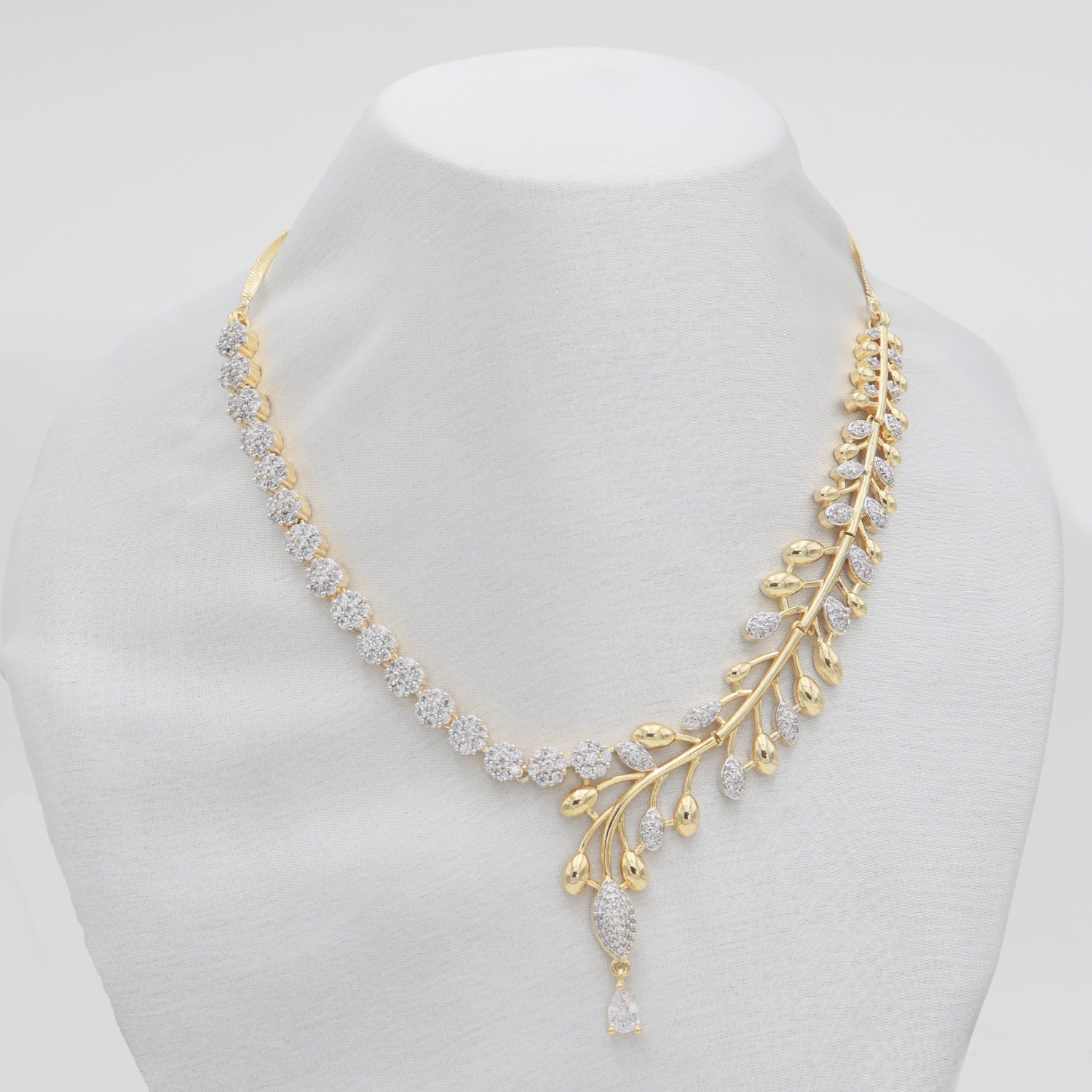 Golden Bloom Asymmetrical CZ Necklace & Earrings Set