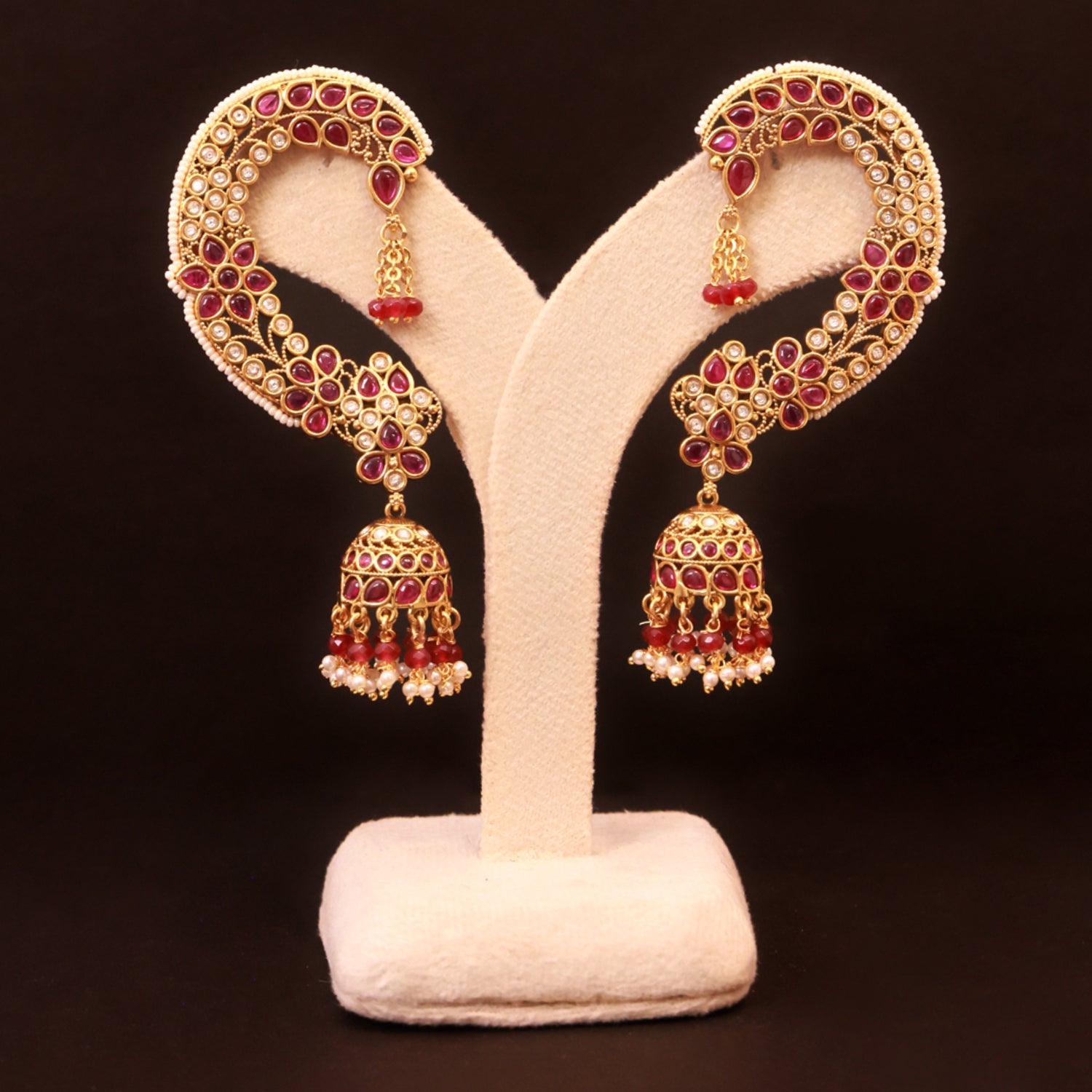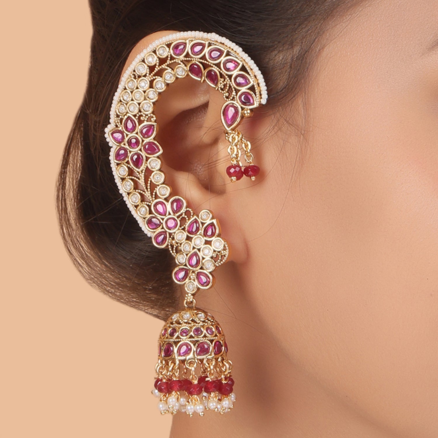 Royal Kundan Ear Cuff Jhumka – Ruby & Pearl Heritage Elegance by OLIARI - Ruby