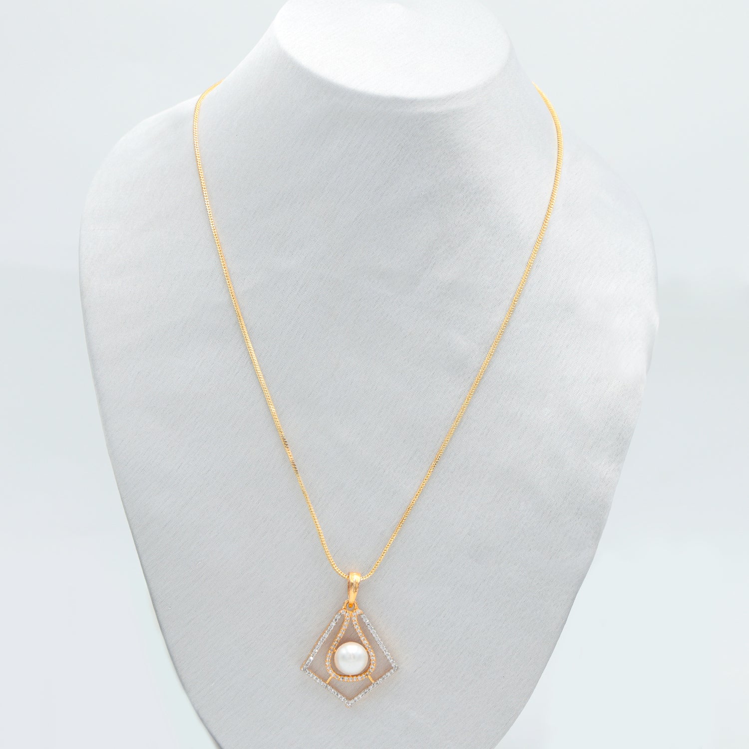 A sleek and stylish pendant set featuring a luminous pearl set inside a modern geometric frame. The matching pearl studs add an elegant and versatile touch, making this set perfect for both ethnic and contemporary outfits. Lightweight, classy, and ideal for everyday elegance or special occasions.