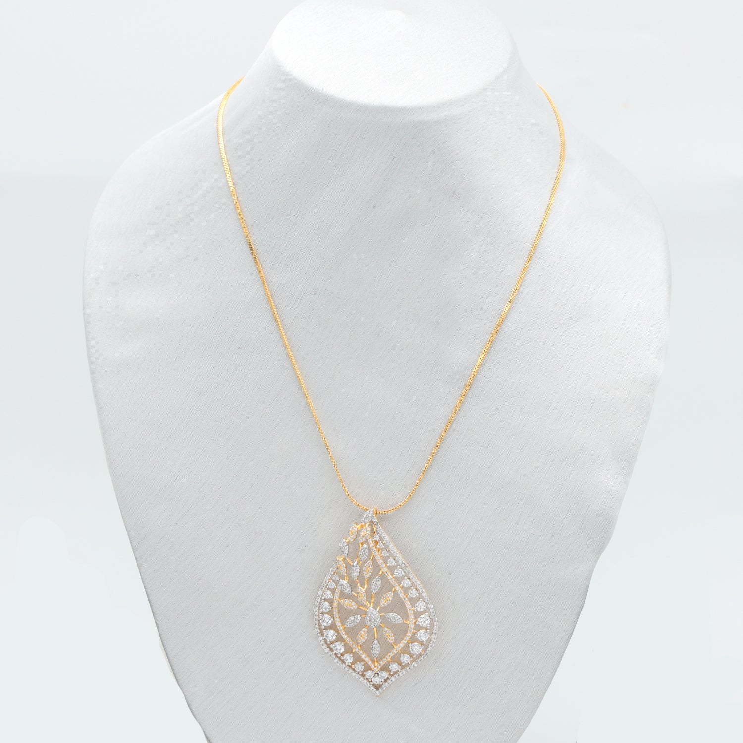 Elegant Leaf-Cut CZ Pendant Set (Gold Finish)