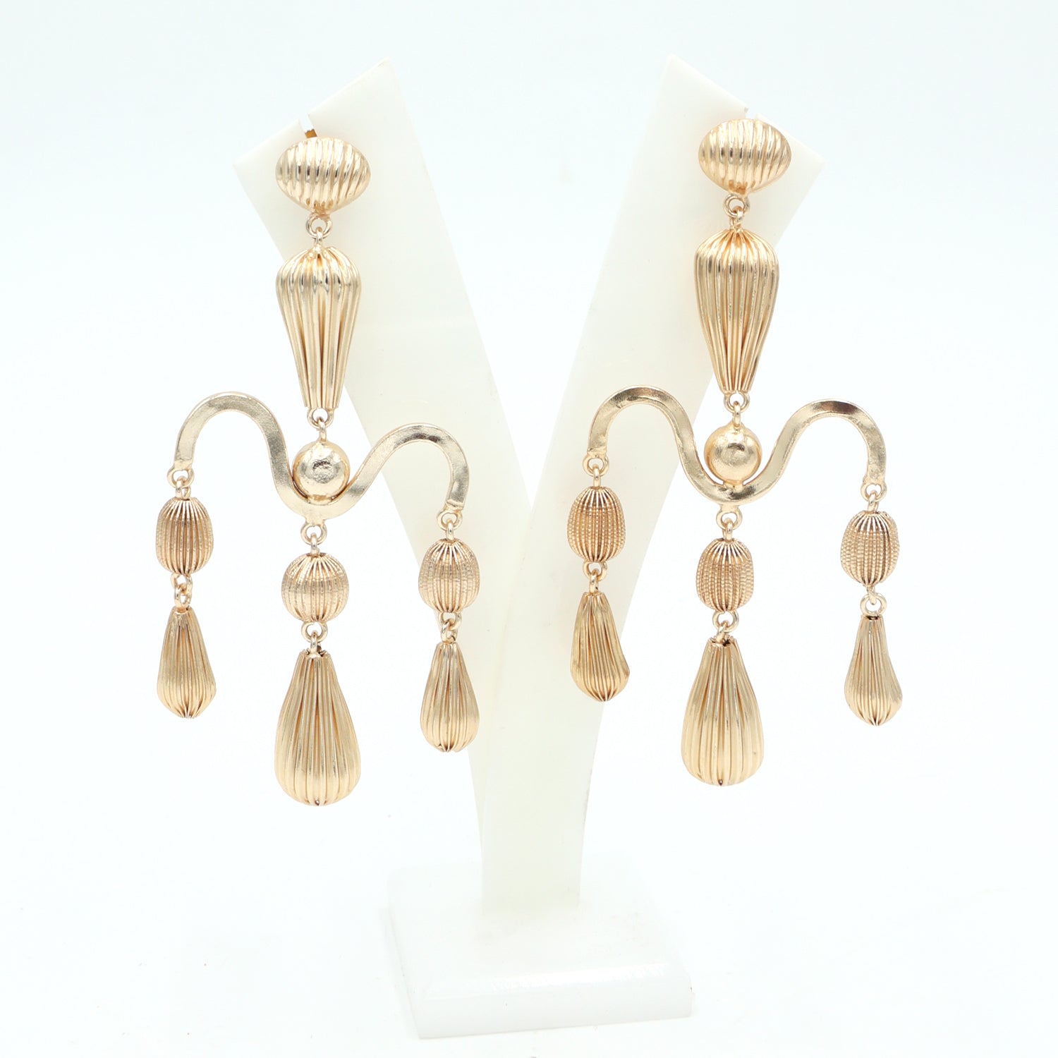 Gold Wave Statement Drop Earrings