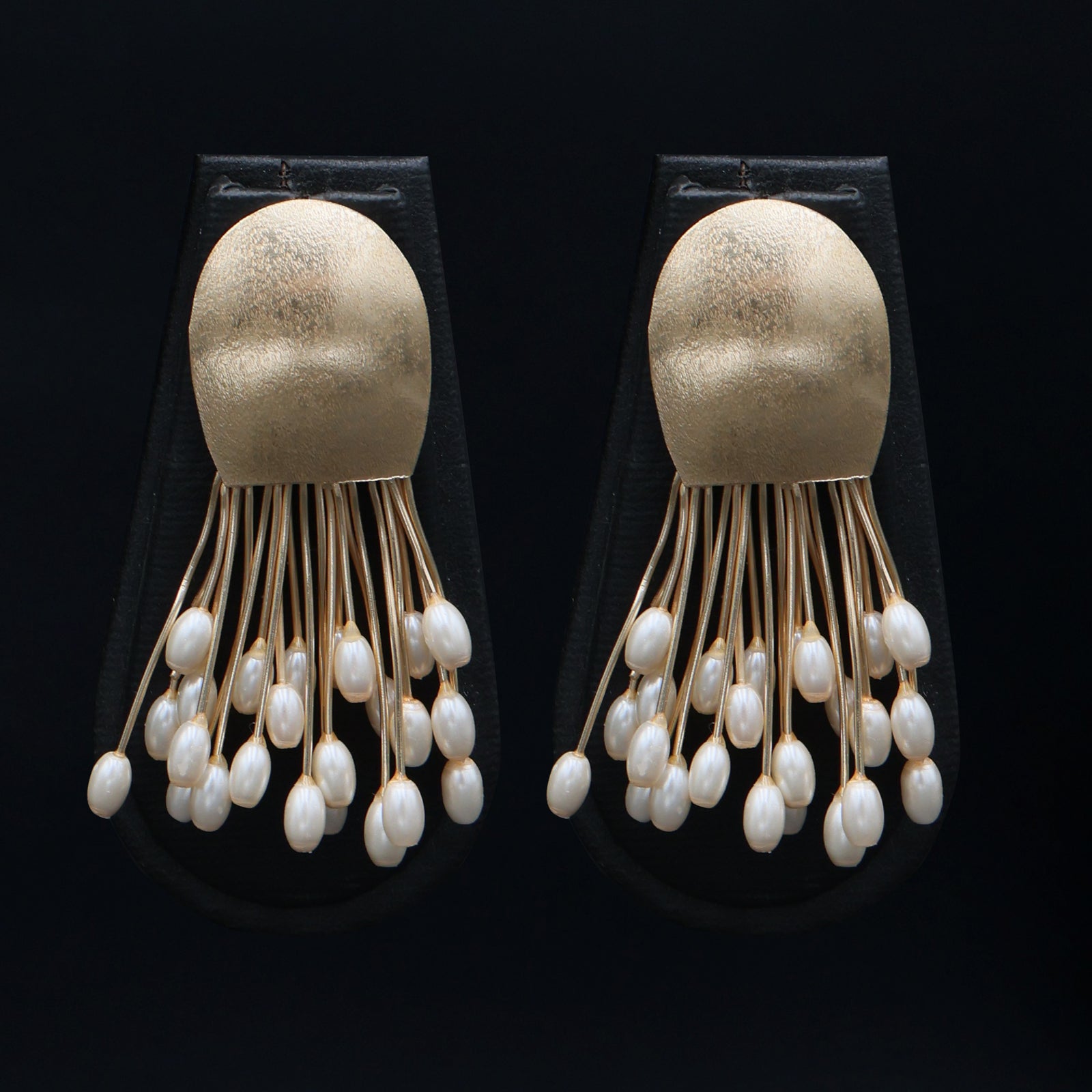 Stylish statement earrings featuring a modern wave-inspired design with textured gold-tone drops. The flowing silhouette and elegant hanging elements create graceful movement, giving a perfect fusion of contemporary western styling with subtle ethnic charm. Lightweight yet eye-catching, ideal for both day and evening looks.