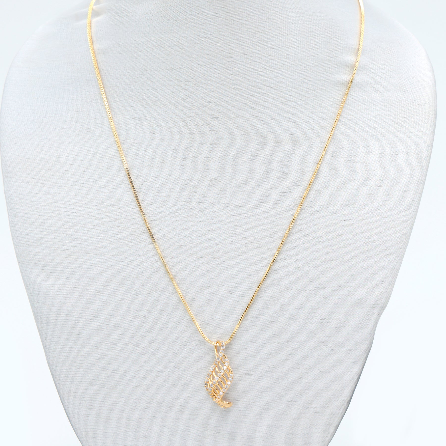 A graceful everyday-wear necklace set featuring a sleek gold chain paired with a delicate leaf-shaped pendant accented with shimmering stones. The matching earrings add just the right amount of sparkle, making it perfect for Indian as well as Western outfits.