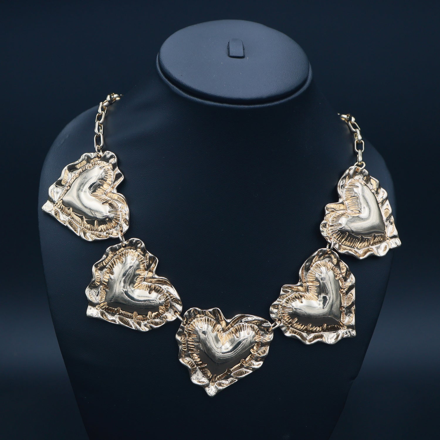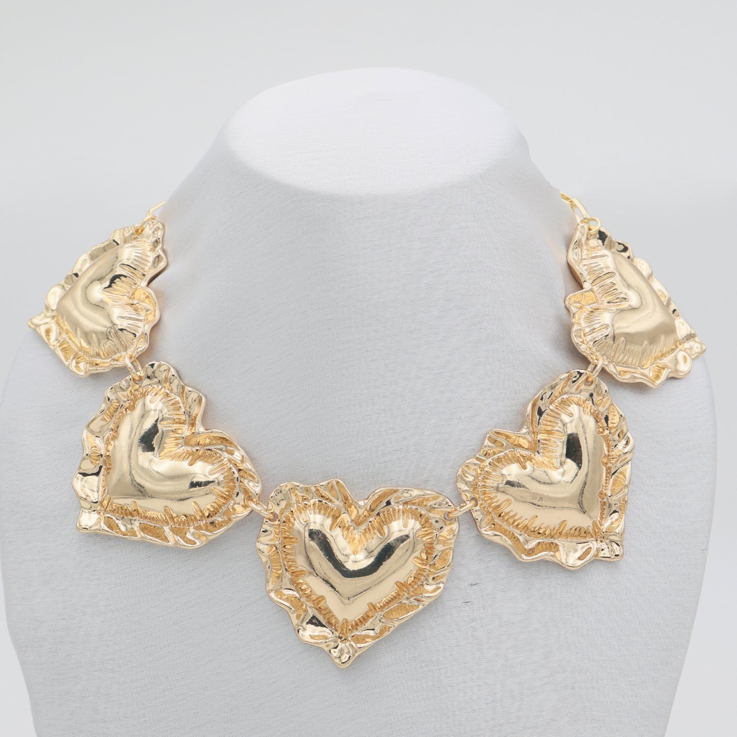 Make hearts turn with the Aurora Textured Heart Necklace, crafted in lustrous gold tone with sculpted, ruffled edges. Each heart plate is hand-finished for a 3D reflective shine, giving it a high-fashion, runway-inspired feel. A statement piece that perfectly complements your modern, confident personality.